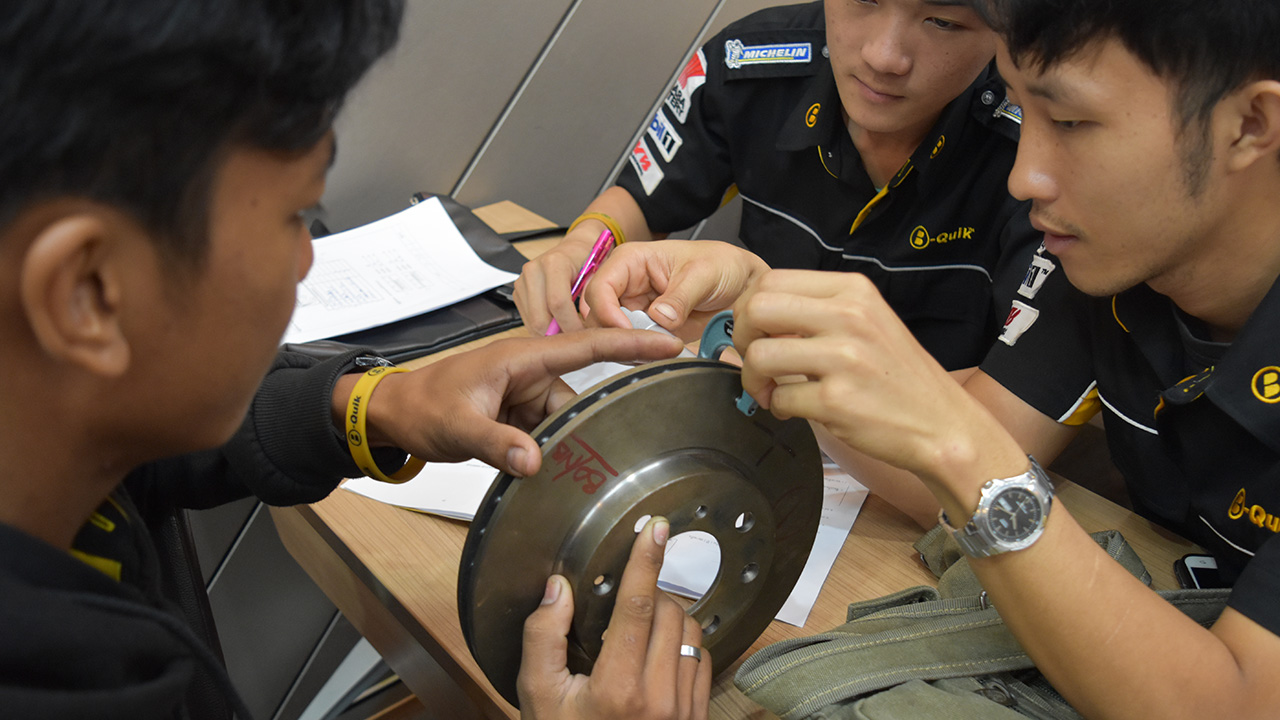 To go from a fitter to a technician – a job where one can perform all of B-Quik’s services, an employee must pass 20 courses, each of which can take from one to several days, says COO Busararat Assaratanakul. It also has training programs it sponsors at technical schools, where students take one day of classes a week and work the rest at B-Quik, she adds. The company covers both a salary and the tuition.